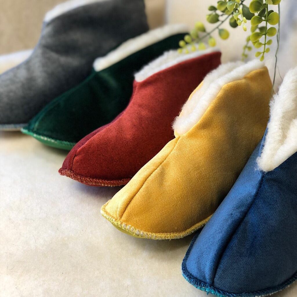 Nous proposons des chaussons avec semelle, fabriqués au Portugal à partir de peaux de mouton Mérinos rigoureusement sélectionnées. Ces peaux sont tannées naturellement de façon végétale, garantissant un produit respectueux et durable.