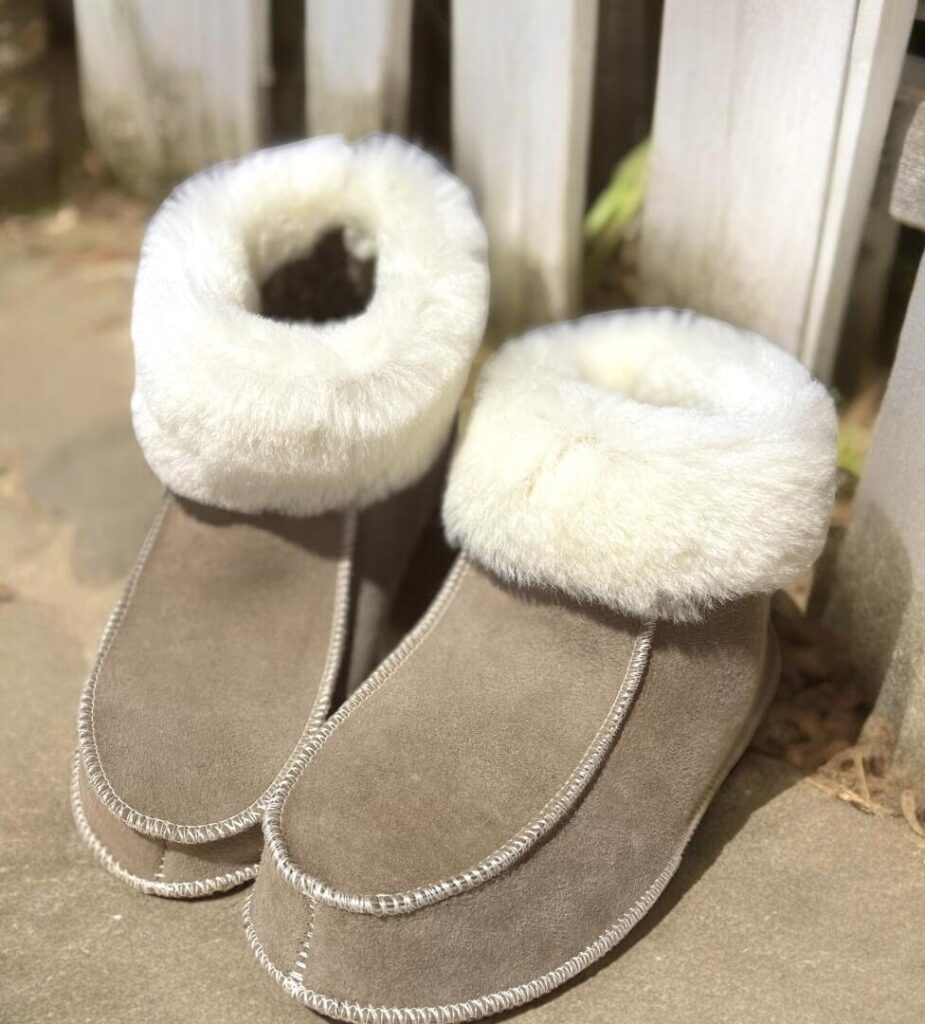 Les chaussons en peau de mouton de « Sheepees » à Chabeuil sont spécialement conçus pour offrir une chaleur optimale durant les mois d’hiver. Grâce à leur doublure en fourrure de mouton douillette et isolante, ces chaussons maintiennent les pieds bien au chaud, même dans les températures les plus basses. La peau de mouton, naturellement régulatrice de température, assure non seulement une chaleur confortable mais aussi une respirabilité accrue, évitant ainsi la surchauffe.