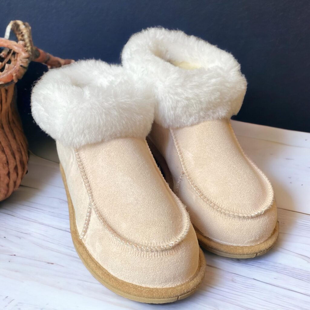 La semelle extérieure des chaussons est souvent fabriquée en caoutchouc antidérapant, ce qui les rend sûrs et pratiques pour une utilisation intérieure et des sorties rapides à l’extérieur. Faciles à enfiler, ces chaussons sont également très appréciés pour leur confort exceptionnel et leur style simple mais élégant. Chez « Sheepees », nous proposons différentes variétés de chaussons en peau de mouton, y compris des modèles fourrés, des mules, et des bottillons, répondant ainsi aux préférences de style et aux besoins de toute la famille.